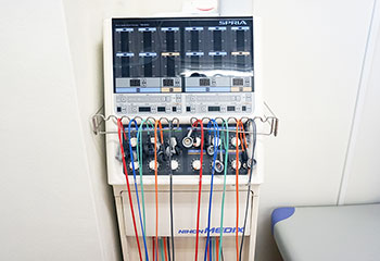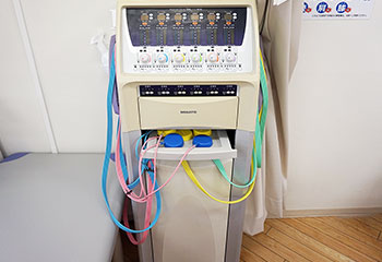 周波数が異なる2つの搬送波を患部に流し、体内に生ずる干渉波のソフトで大きな電気エネルギーで深部の筋を刺激することにより、鎮痛・鎮静に作用します。